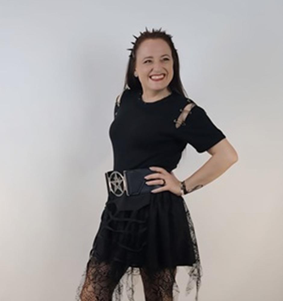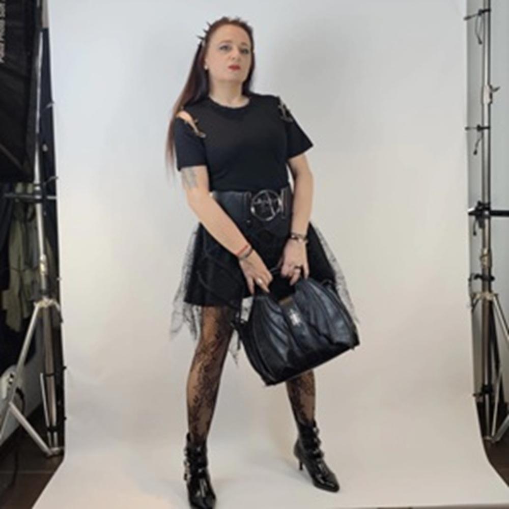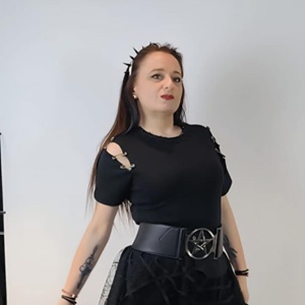 Gotycka koszulka damska Ritual Edge – czarna koszulka z metalowymi klamrami, styl gothic punk, odzież alternatywna.