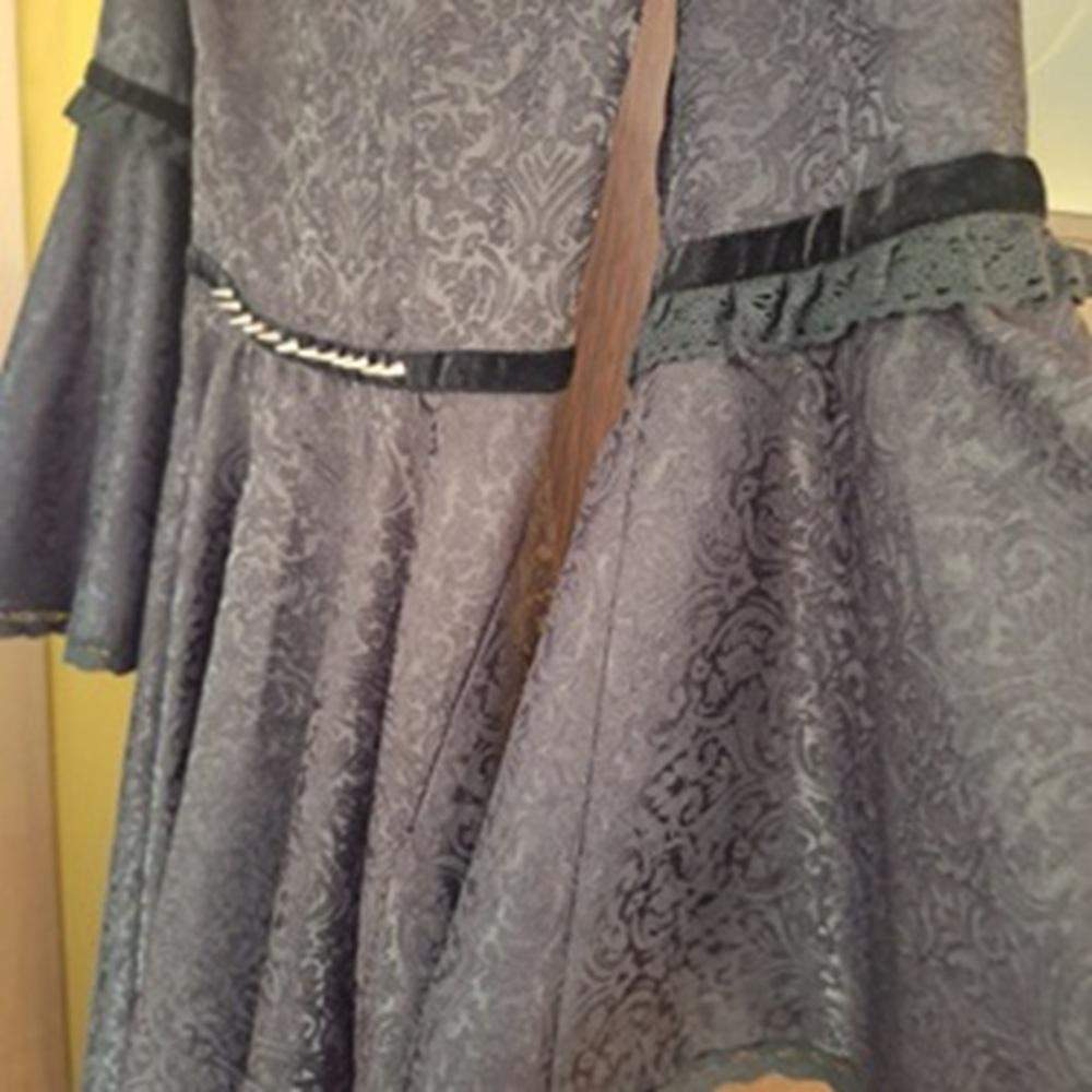 Krótki przód podkreśla nogi, a wydłużony, rozkloszowany tył nadaje sylwetce majestatycznego charakteru. Długie rękawy i klasyczny dekolt czynią ten model uniwersalnym – idealnym zarówno na gotyckie przyjęcia, klubowe wieczory, jak i alternatywne sesje zdjęciowe.