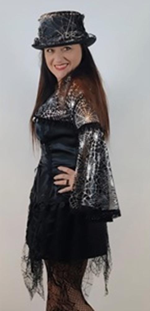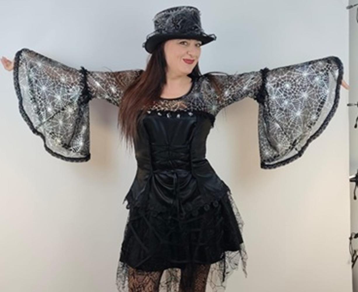 Gotycka koszula damska z koronką Nightshade Lace Mistress – czarna bluzka gotycka, koronka pajęcza, rozkloszowane rękawy.