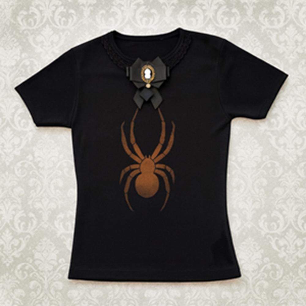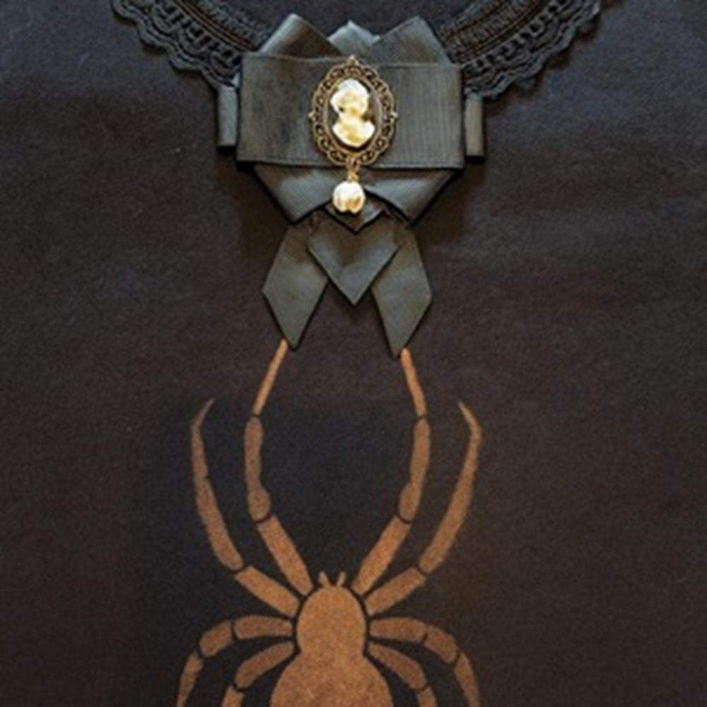 Gotycka koszulka damska z pająkiem „Spider Cameo” – koronka, kokarda i kamea. Styl gothic w eleganckim wydaniu.