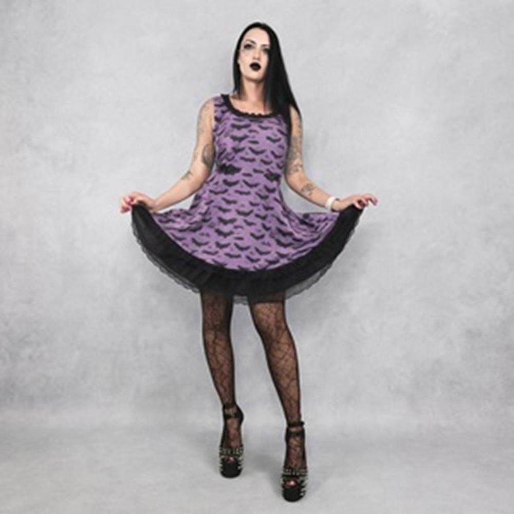 Sukienka gotycka Bat Queen | Fiolet z czarnymi nietoperzami